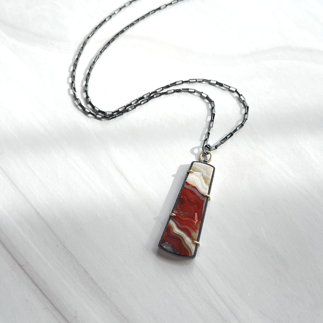 Round Mixed Metal and Garnet Pendant Necklace - MORGAN