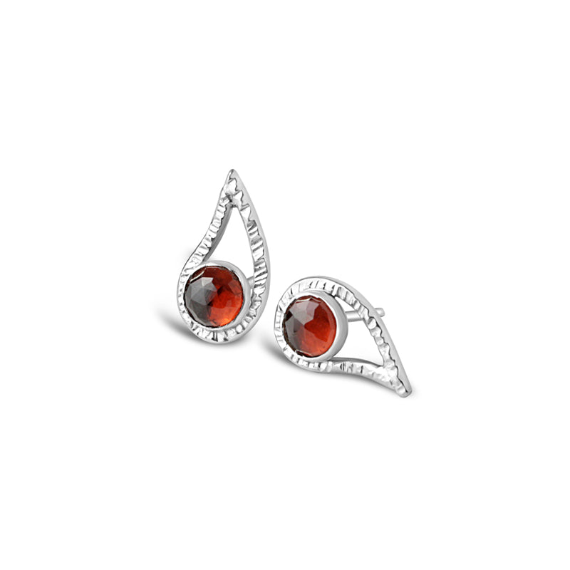 Minimalist Mixed Metal and Garnet Post Earrings - LITTLE DROPS