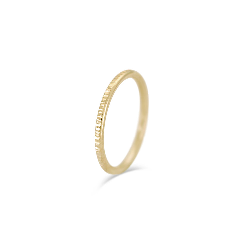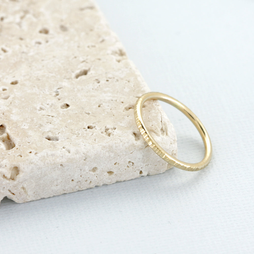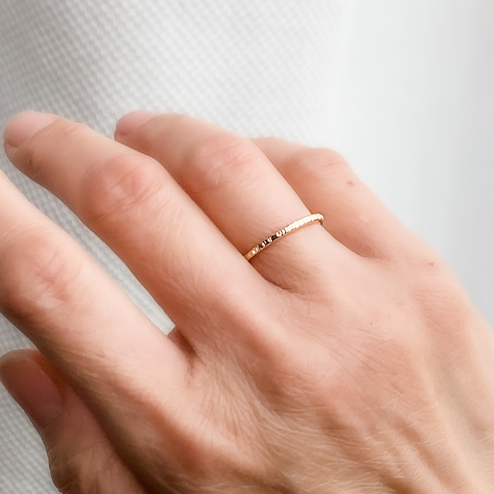 This simple yet elegant 14k gold band is a must-have in everyone's jewelry collection. This ring twinkles in the light with its unique texture. Great to stack a couple for a more dramatic statement or pair it with my other rings in the shop.