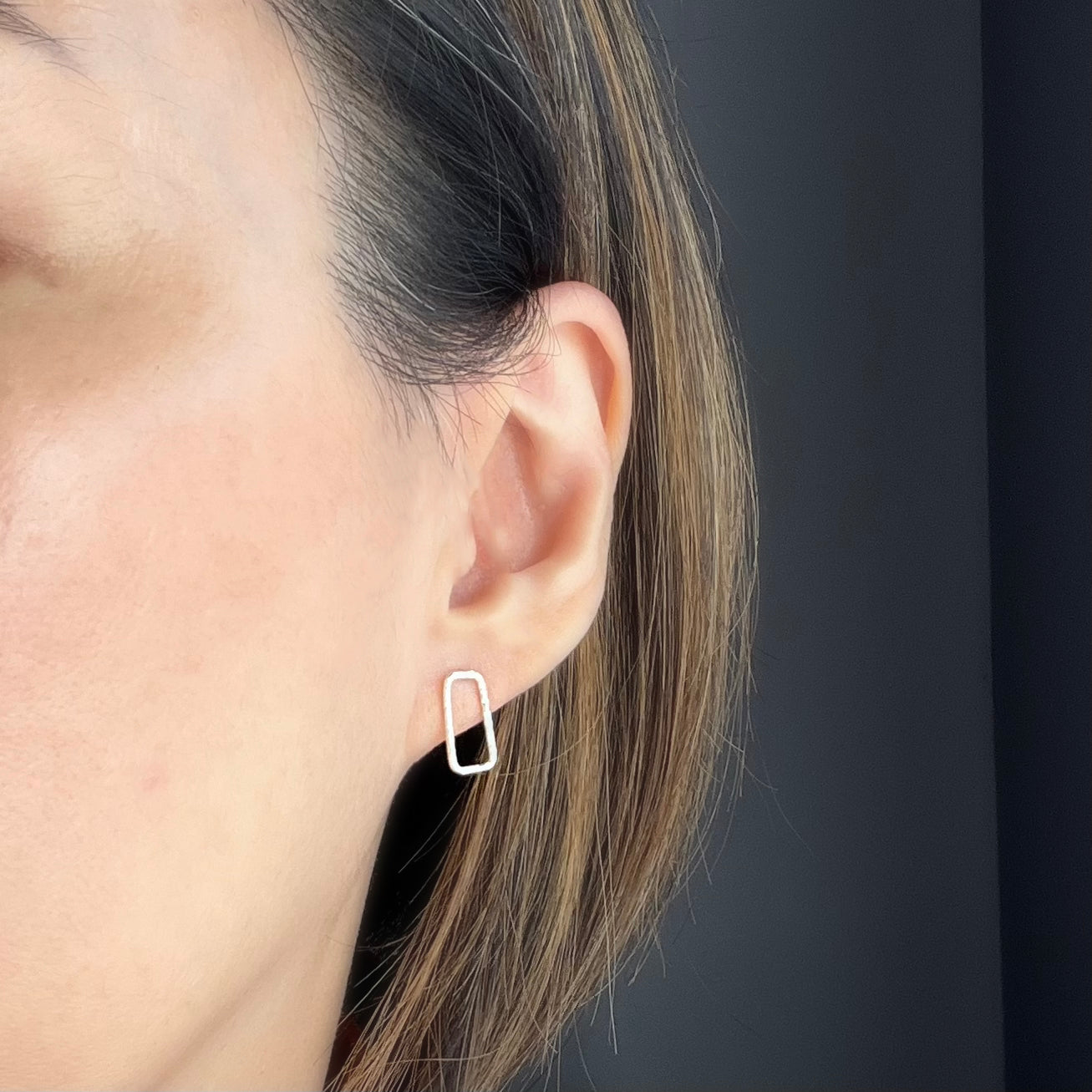 Here is a fun pair of geometric earrings. It's a little "wonky" and each pair is slightly different!
