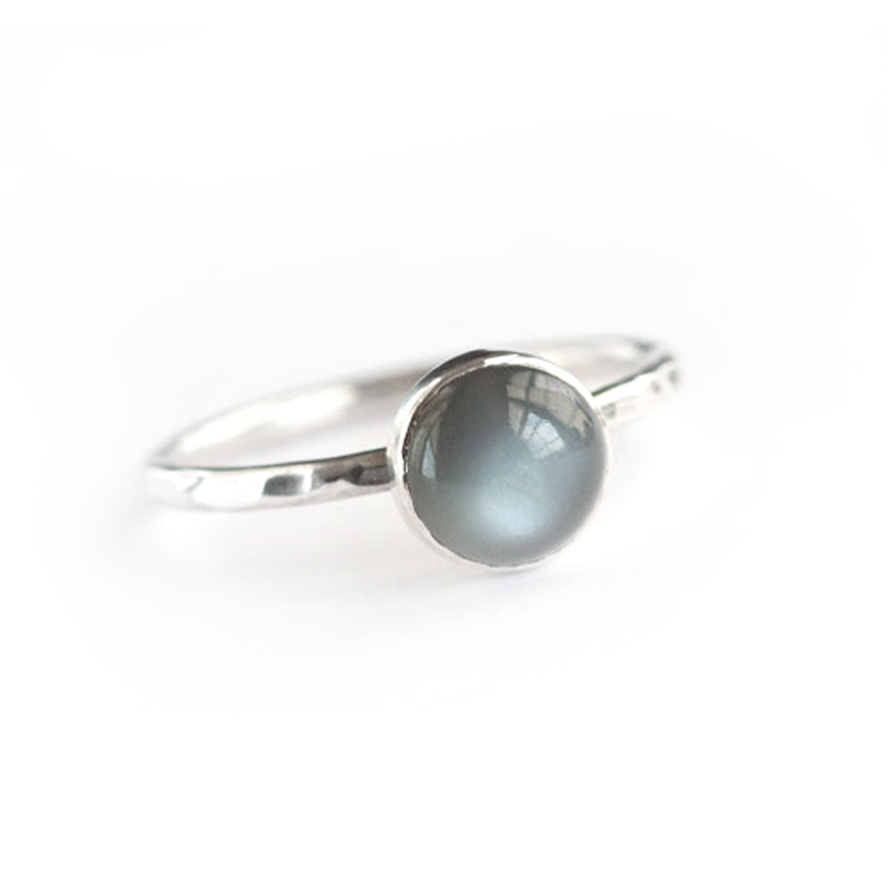Black Moonstone and Silver Hammered Stacking Ring