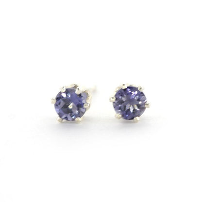 I hand-selected each pair of gemstones to match cut, color and brilliance and set them onto 6-prong post earrings with matching ear nuts. The iolite gemstones are 4mm in size and each earring measure about 5mm across.