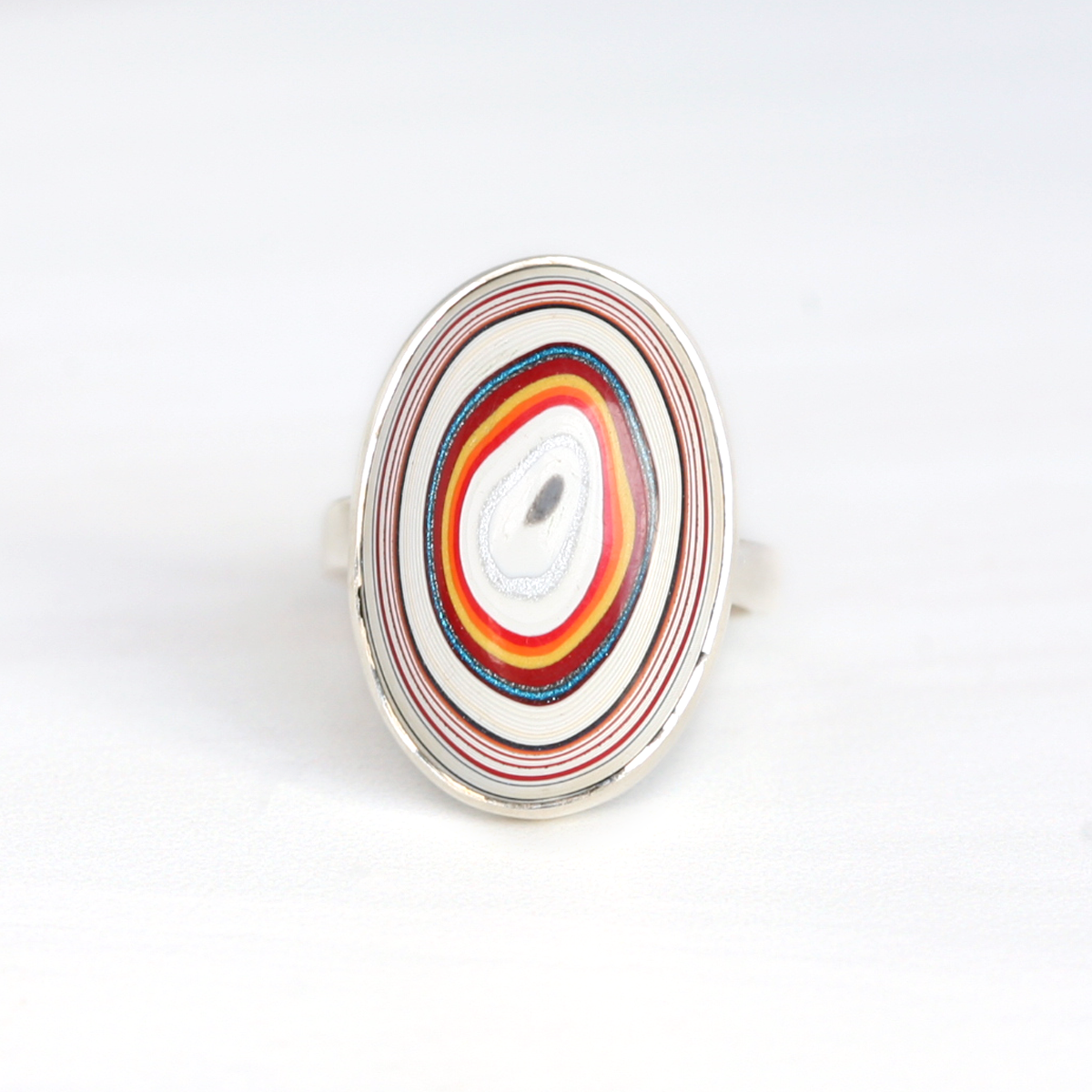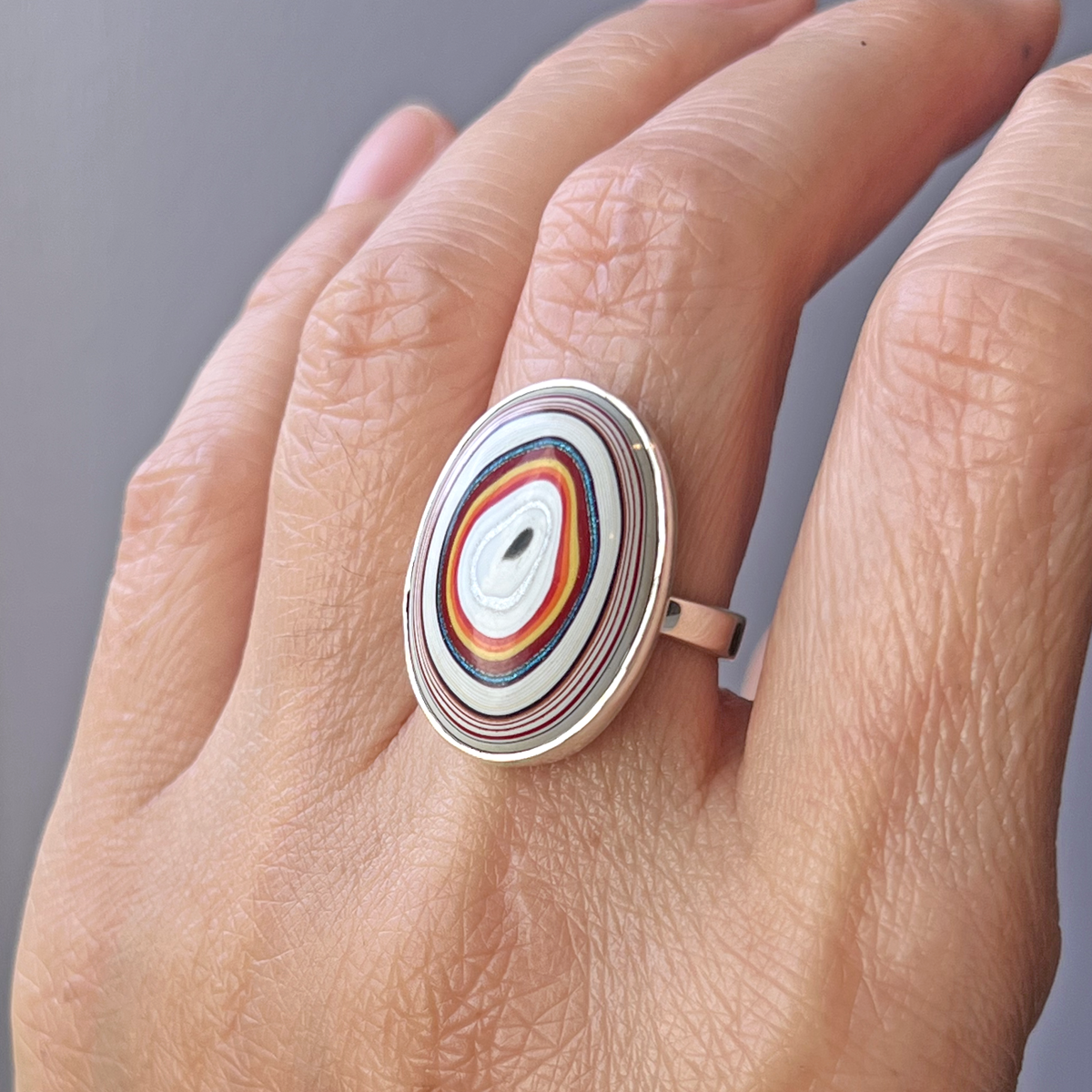 Swirly Upcycled Oval Fordite Silver Ring - Detroit Agate Ring