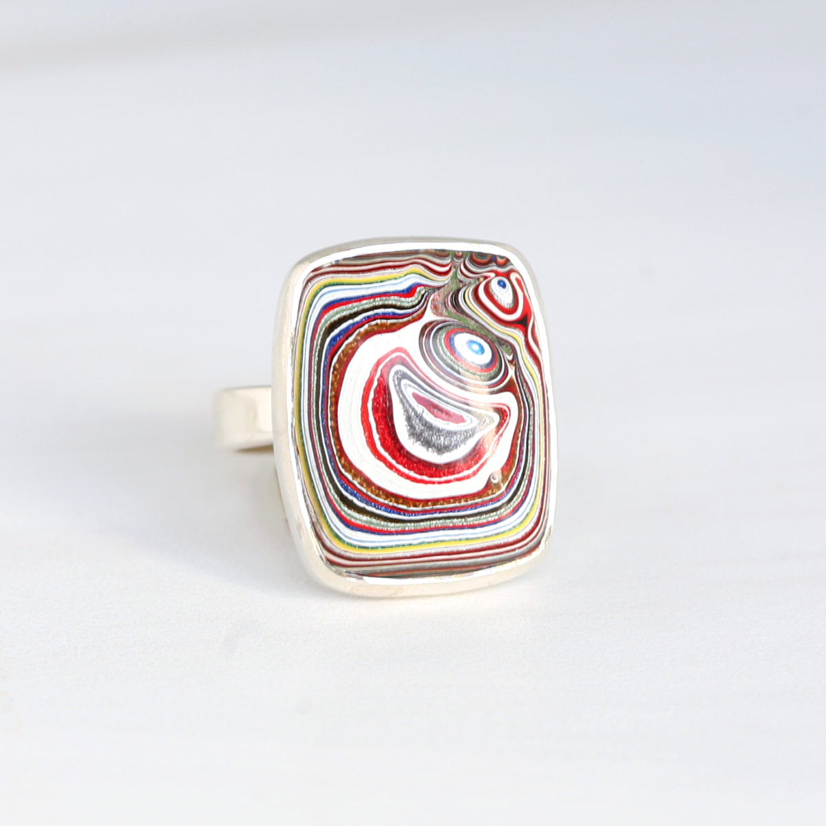 Groovy Upcycled Rectangular Fordite Silver Ring - Detroit Agate Ring
