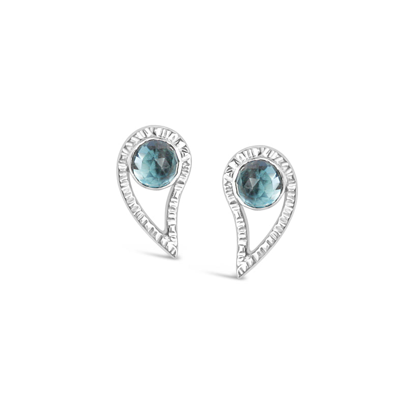 Paisley Gemstone Stud Earrings in Blue Topaz
