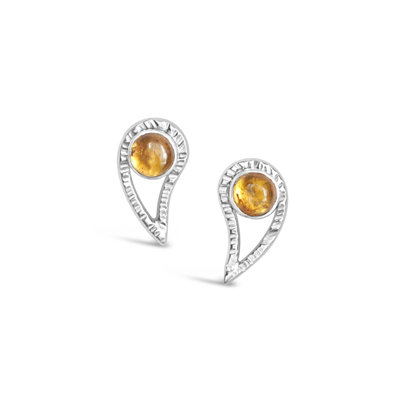 Silver Paisley Gemstone Stud Earrings in Spessartine Garnet
