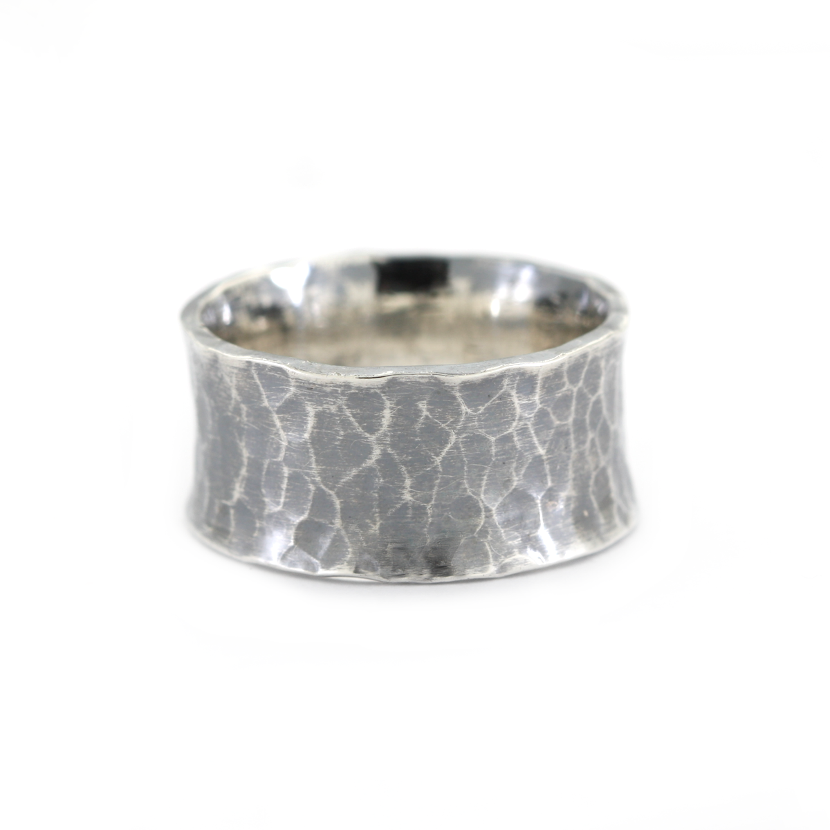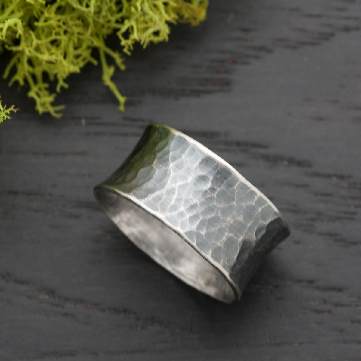 Wide Hammered and Oxidized Sterling Silver Ring - PALI
